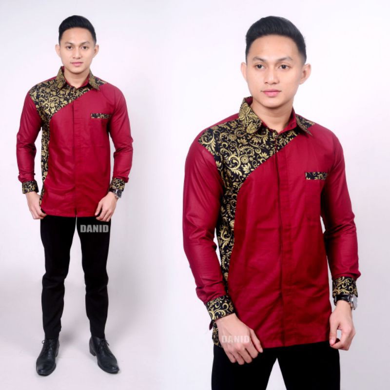 Name: New Murah Batik Kemeja Hem Pria Motif Prada Kombinasi Merah Baju Kantor Seragam Alkhalis01