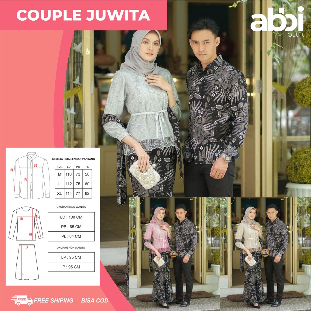 Produsen Pakaian W di Kabupaten Manggarai Batik Couple Kebaya Set Juwita Series Tunangan Lamaran Wisuda Kondangan Kekinian 2021 dari Abbi.outfit Kota Pekalongan