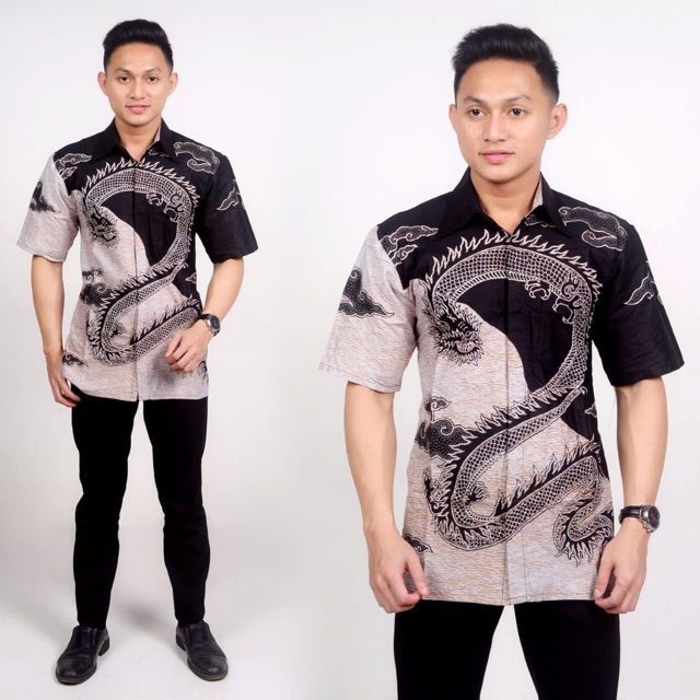 Name: Kemeja Batik Naga Baju Naga Pria Hitam Manis Baju Batik Lengan Pendek