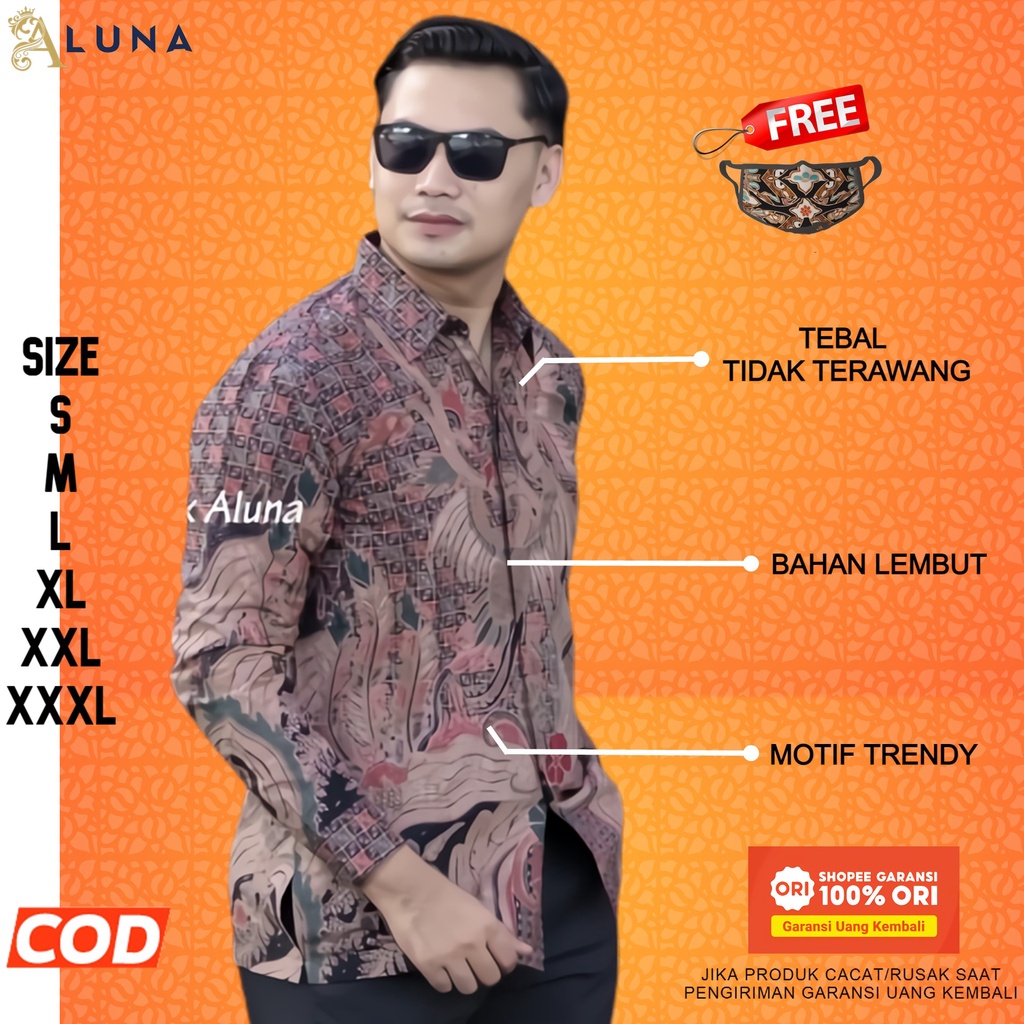 Name: Kemeja Batik Pria Lengan Panjang Premium Slimfit Kantor Modern Batik Aluna Pcw 016