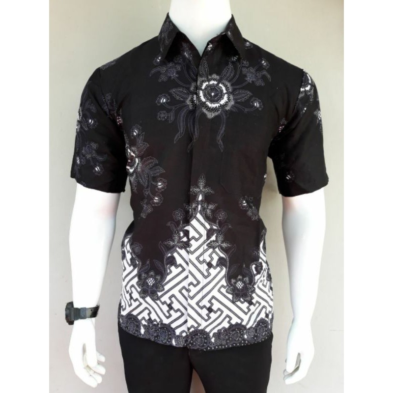 Pusat Grosir Pakaian di Kabupaten Timor Tengah Utara Bswart Hrb026 Kenongo Hem Batik Gunungan Hitam Putih Kemeja Batik Pria dari Sr Batik Kota Pekalongan