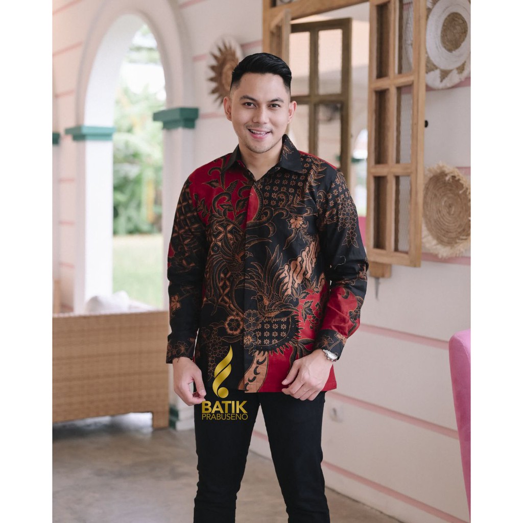 Name: Kemeja Batik Pria Lengan Panjang Kawung Peksi Merah Full Furing Seragam Kantor Premium Modern Trendy