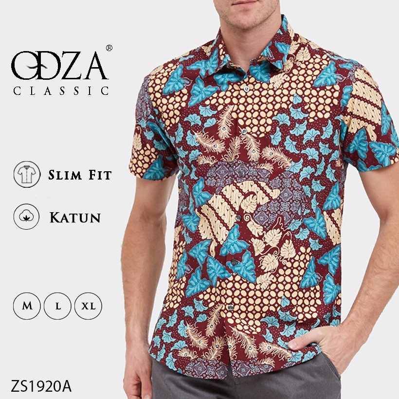 Name: Odza Kemeja Batik Pria Slim Fit Modern Mewah Lengan Pendek Slimfit Delsiwa