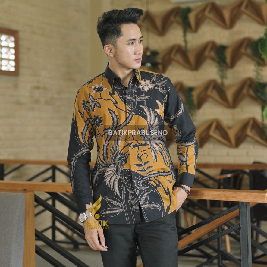 Sale Pakaian di Kabupaten Sumbawa Sandya Kemeja Batik Pria Lengan Panjang Slimfit Katun Printing Hem Baju Seragam Kantor Modern dari Batik Prabuseno Official Kota Surakarta (solo)