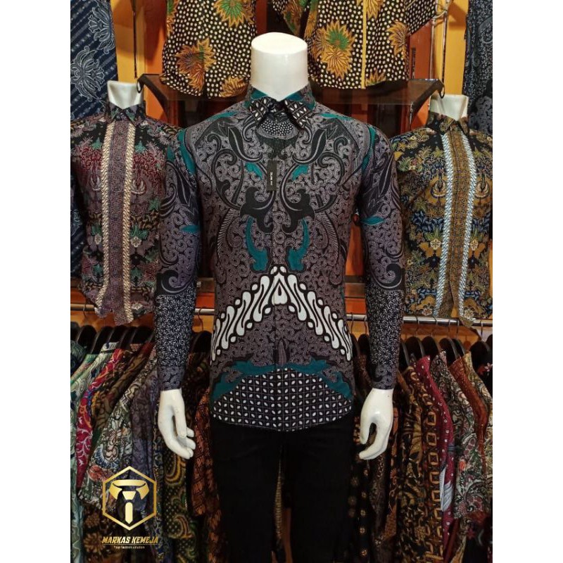 Name: Kemeja Batik Pria Lengan Panjang Slimfit Mewah Motif Daun Seragam Nikah Saku Paspol